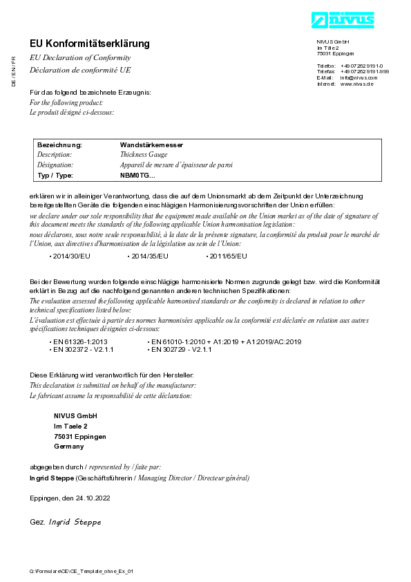 Konformitätserklärung Kompaktdoppler-Aktivsensoren