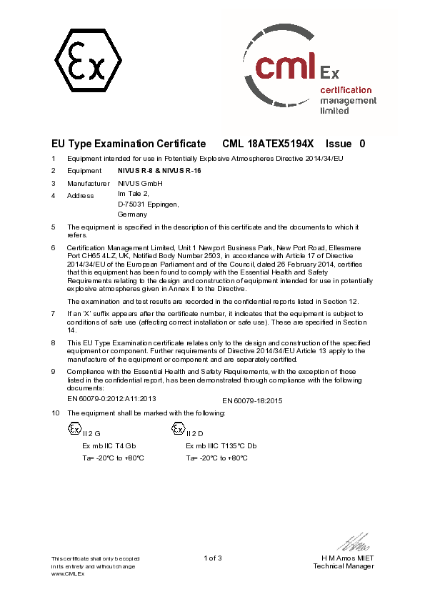 Type Examination Certificate "NIVUS R-8 & NIVUS R-16"