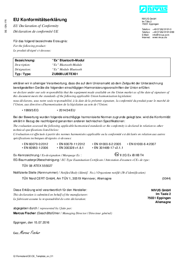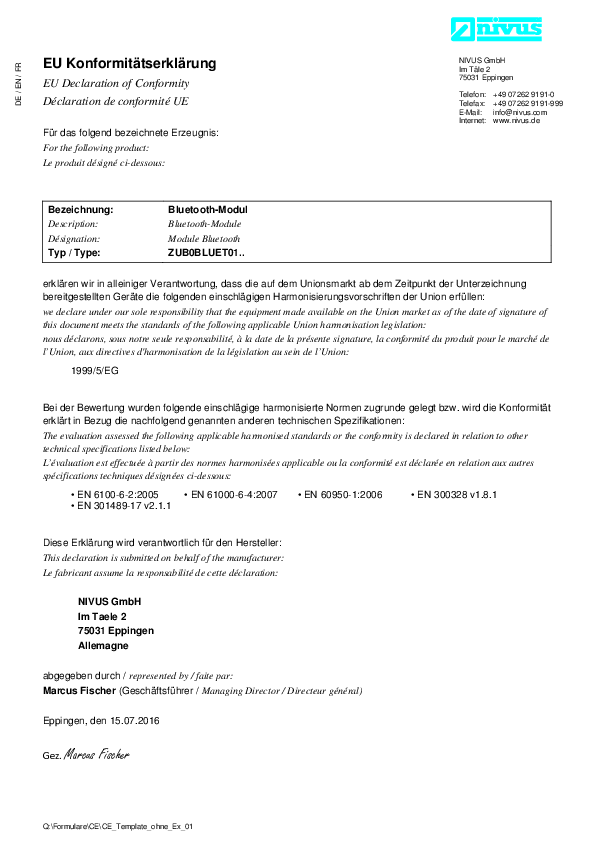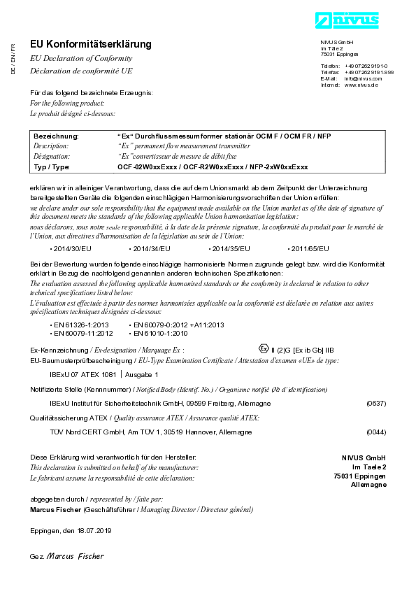 Konformitätserklärung "Durchflussmessumformer stationär mit internem 2G/3G/4G Modem zur Datenfernübertragung"