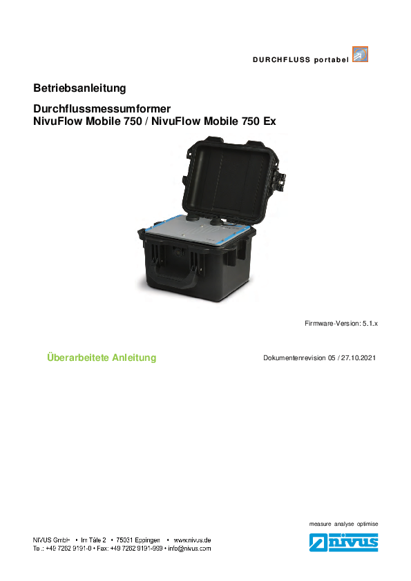 Betriebsanleitung Durchflussmesser NivuFlow Mobile 750/NivuFlow Mobile 750 ex Rev. 03