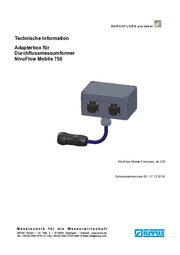 Technische Information "Adapterbox für Durchflussmessumformer NivuFlow Mobile 750"