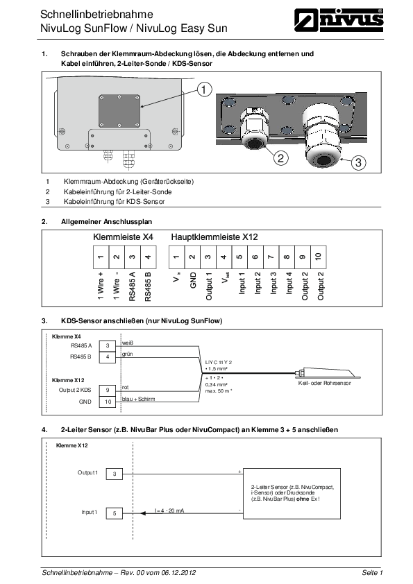 Kurzbetriebsanleitung für Messgerät NivuLog SunFlow