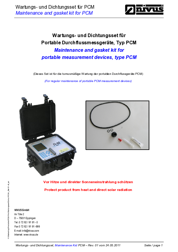 Wartungs- und Dichtungsset für portable Durchflussmessgeräte, Typ PCM