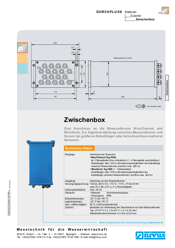 Betriebsanleitung Zwischenbox für Messgeräte NivuChannel und NivuSonic