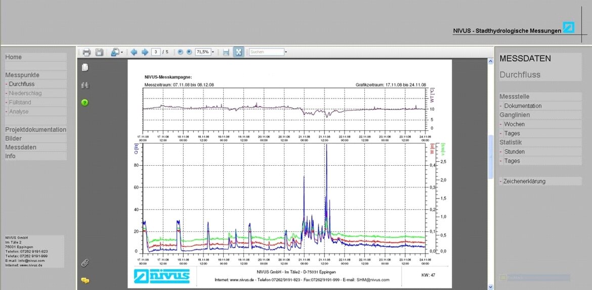 - Bereitstellung von Informationen über den Fortschritt der Messkampagne (Niederschlagsintensität, Abflussdaten, etc.)