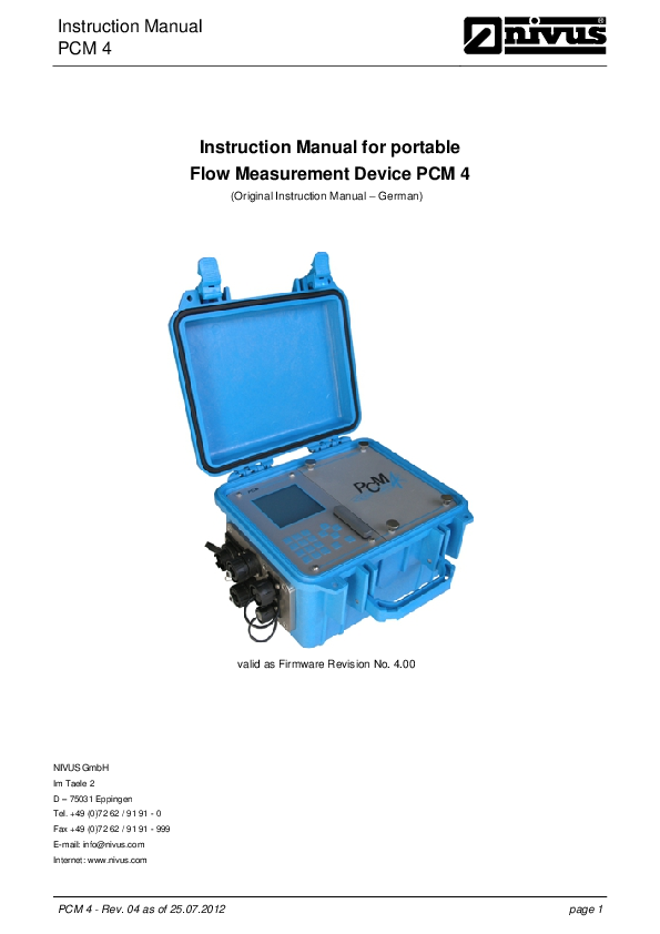 Instruction Manual for portable Flow Measurement Device PCM 4