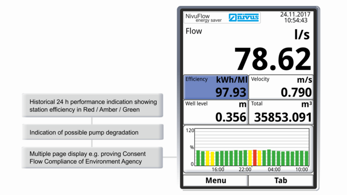 Based on real time flow the NivuFlow Energy Saver allows you to realise energy saving potentials with many more benefits for your pump station operators.