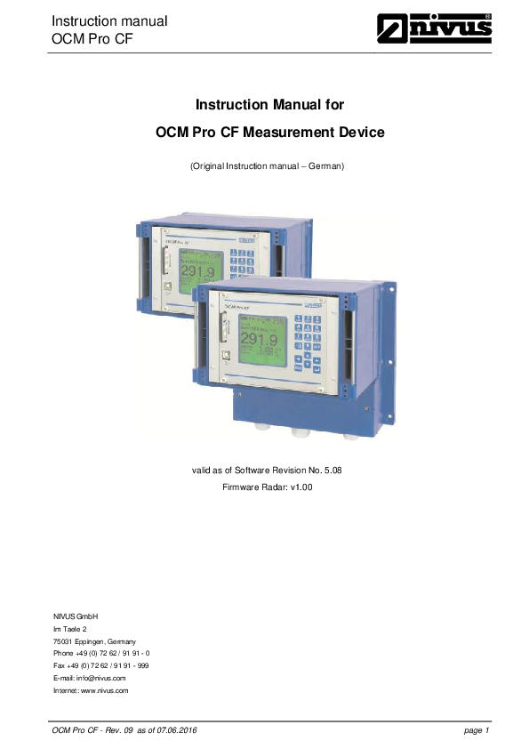 Technical Instruction for KDA Doppler sensors (pipe and wedge style)