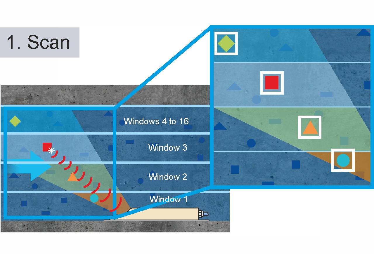 A few milliseconds later a second scan follows. The resulting echo patterns are saved as well.