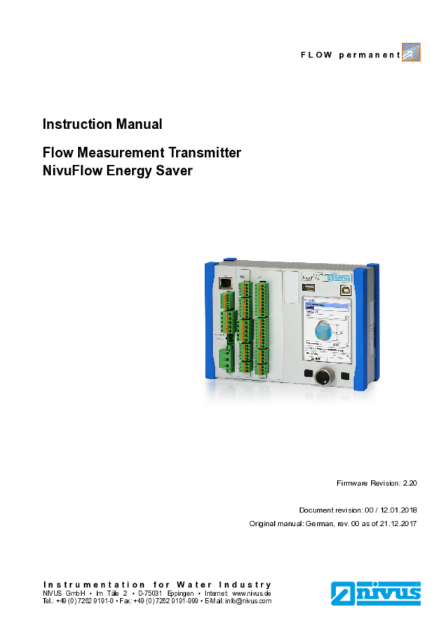 Instruction Manual | NIVUS Data Transmission of Devices NivuFlow 7550 and Energy Saver - Supplement to the respective Instruction Manual (Rev. 02)