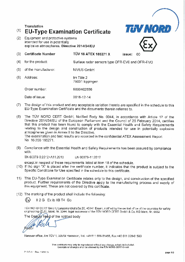 | Ex-Approval | II 2 G Ex ib IIB T4 Gb; TÜV 16 ATEX 185271X; IECEx 16.0034X |