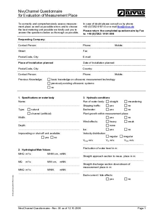 NivuChannel Questionnaire for Evaluation of Measurement Place