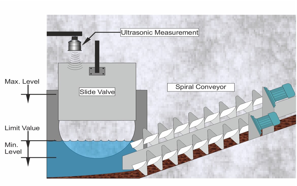 - Sistema de medición de nivel sin contacto para control alterno de transportadores de tornillo.