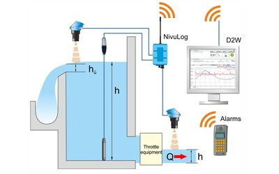 - Se utilizó ecosondas ultrasónicas tipo NivuCompact en el punto de regulación y también en el borde de descarga del tanque. Las ecosondas se activan directamente con el data logger.