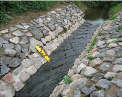 Radier en béton, parois en pavés pour ouvrages hydrauliques