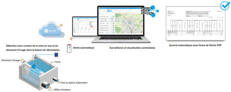 Les tâches de mesure liées à un bassin à déversement d'eaux pluviales sont multiples : mesure du niveau, pilotage d'unités de