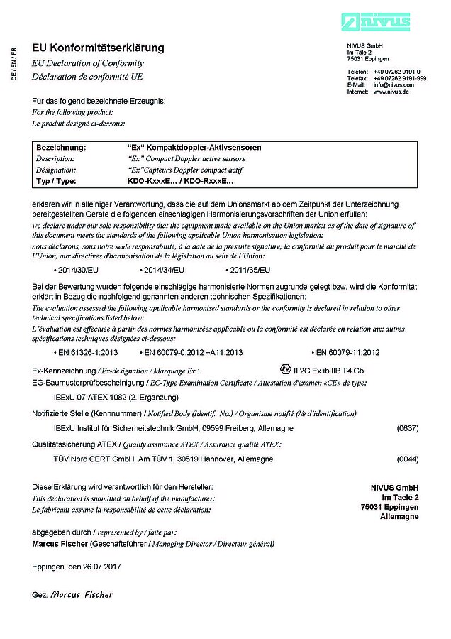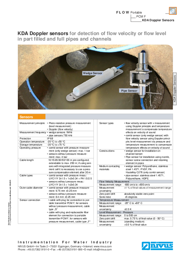 Le capteur de vitesse KDA est adapté pour les mesures continues en milieux faiblement à fortement chargés. Les capteurs hydrodynamiques sont conçus pour l'installation sur les parois ou le radier du canal. En combinaison avec un convertisseur de mesure, ex. OCM FR / OCM F, ils constituent un système complet de mesure de débit.