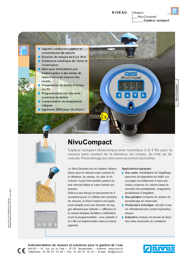 L´afficheur intégré facilite confortablement la programmation. Le NivuCompact peut être programmé sans PC via le clavier intégré. Une variante 2 ou 3 fils est implémentée dans le même appareil (en fonction du raccordement).
