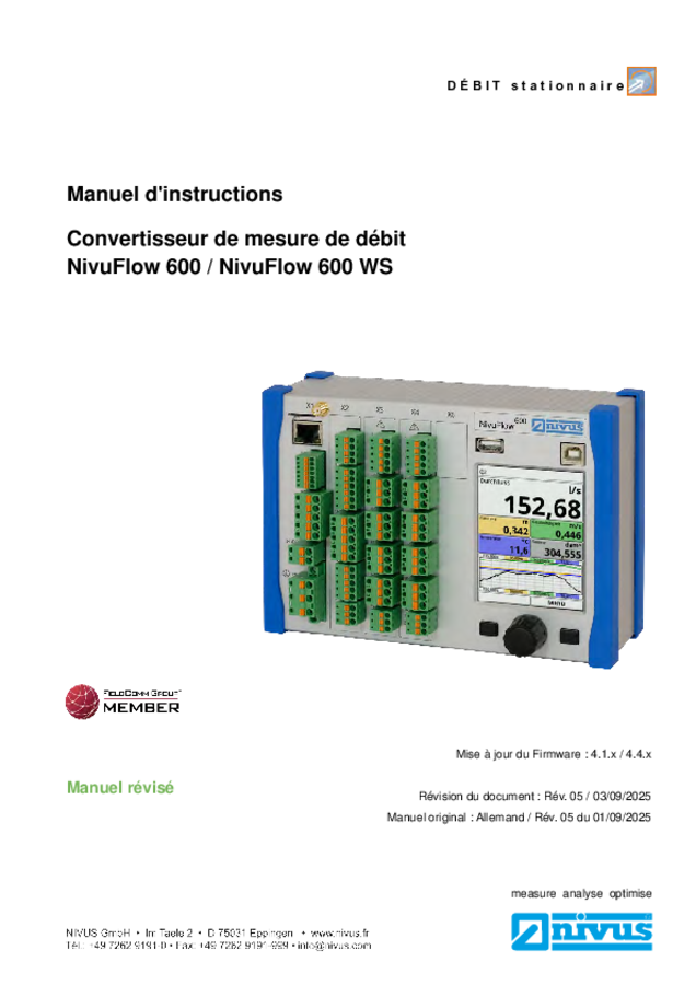 Manuel d´instruction | NivuFlow 600 / NivuFlow 600 WS (Rev. 05)