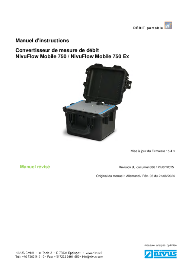 Manuel d´instruction | NivuFlow Mobile 750 / NivuFlow Mobile 750 Ex (Rev. 06)