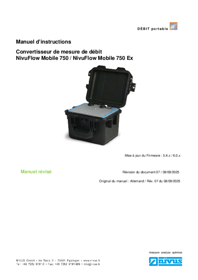 Manuel d´instruction | NivuFlow Mobile 750 / NivuFlow Mobile 750 Ex (Rev. 07)