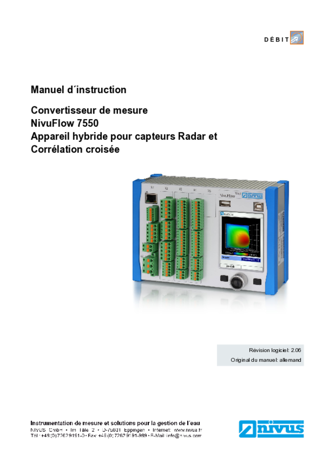 Manuel d'instruction | NIVUS Transmission des données des appareils NivuFlow 550, 600, 650, 7550, Energy Saver et NivuParQ 850 - Complémentaire au manuel d'instruction respectif (Rev. 01)