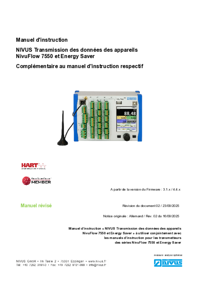 Manuel d'instruction | NIVUS Transmission des données des appareils NivuFlow 7550 et Energy Saver - Complémentaire au manuel d'instruction respectif (Rev. 02)