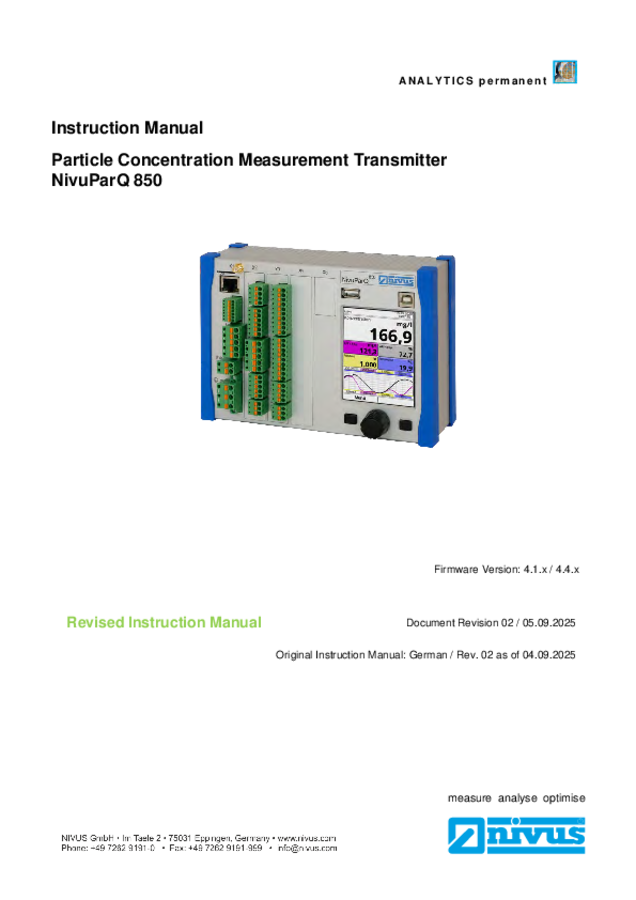 Déclaration de conformité UE | Convertisseur de mesure de concentration de particules NivuParQ 8xx