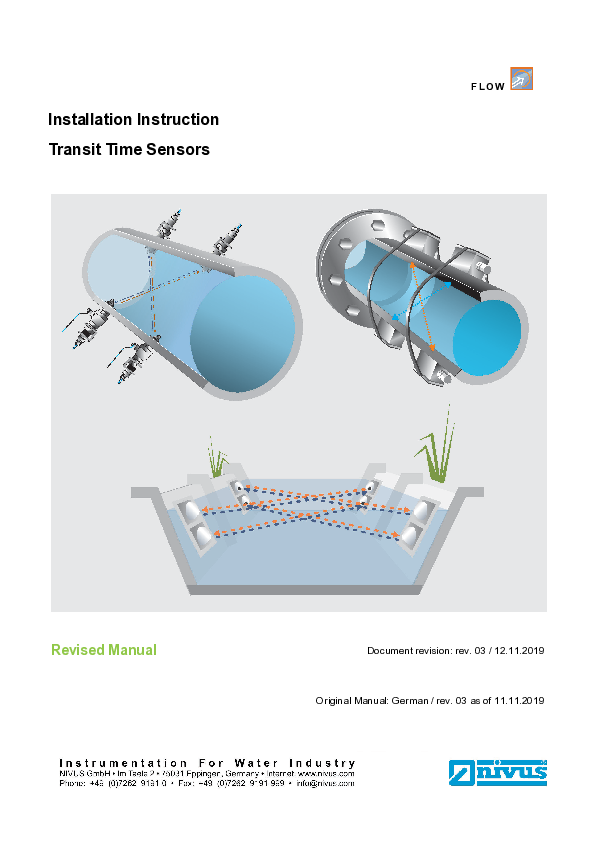 - ultradźwiękowy czujnik transit time do podłączenia z urządzeniem NivuFlow 650