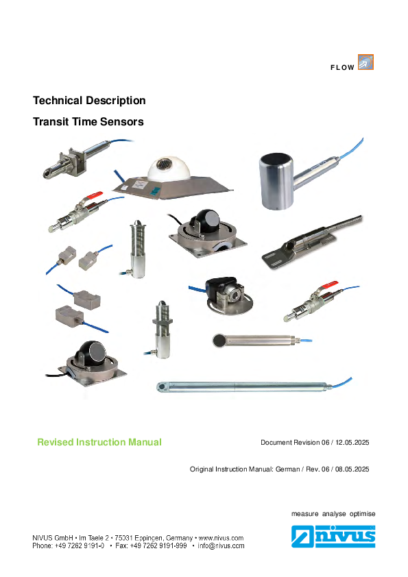 - ultradźwiękowy czujnik transit time do podłączenia z urządzeniem NivuFlow 600
