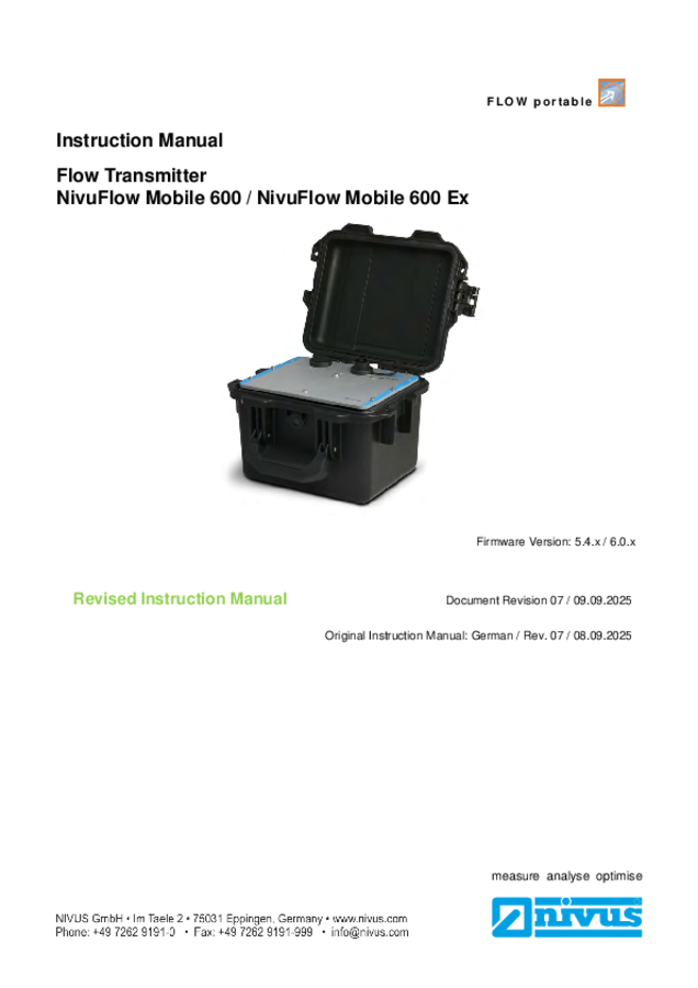 EU Declaration of Conformity | Portable flow measurement transmitter/data logger, standard version NivuFlow Mobile / NivuLevel Mobile