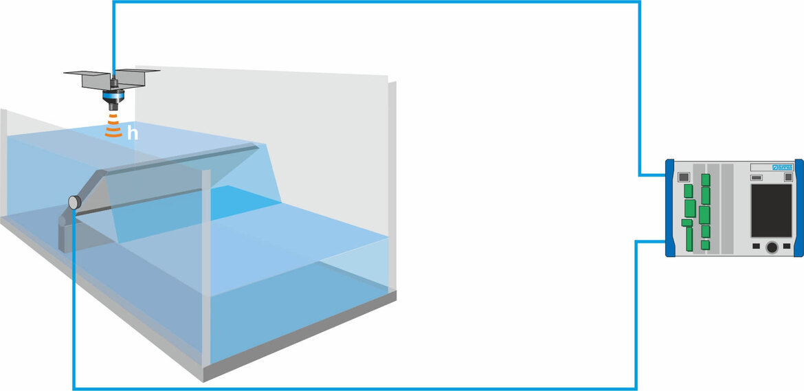 Movable overflown weir flaps allow optimum utilisation of available storage capacities. In such cases, there are two possibilities to determine flow. On one hand flow can be determined solely by measuring the inclination of the weir flap. This can be achieved by using an inclinometer.