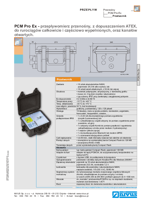 Przenośny przepływomierz do ultradźwiękowego pomiaru przepływu w lekko, jak i mocno zabrudzonych mediach, w rurociągach i kanałach z pełnym i niepełnym wypełnieniem