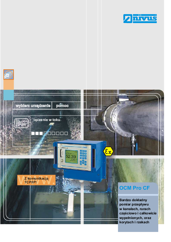 Ultradźwiękowy pomiar przepływu do pracy w lekko lub mocno zanieczyszczonych mediach, rurociągach i kanałach z pełnym lub niepełnym wypełnieniem.